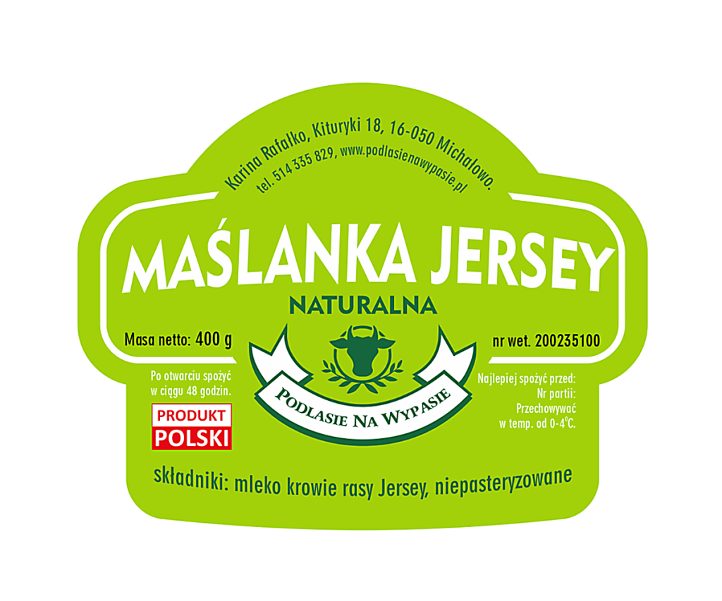 Wytwarzamy ją z mleka A2 od krów rasy Jersey, które charakteryzuje się wyjątkowo wysoką zawartością białka, wapnia i zdrowych tłuszczów. Dzięki temu nasza maślanka ma łagodny, lekko kwaskowaty smak i przyjemnie kremową konsystencję – mimo niskiej kaloryczności.
